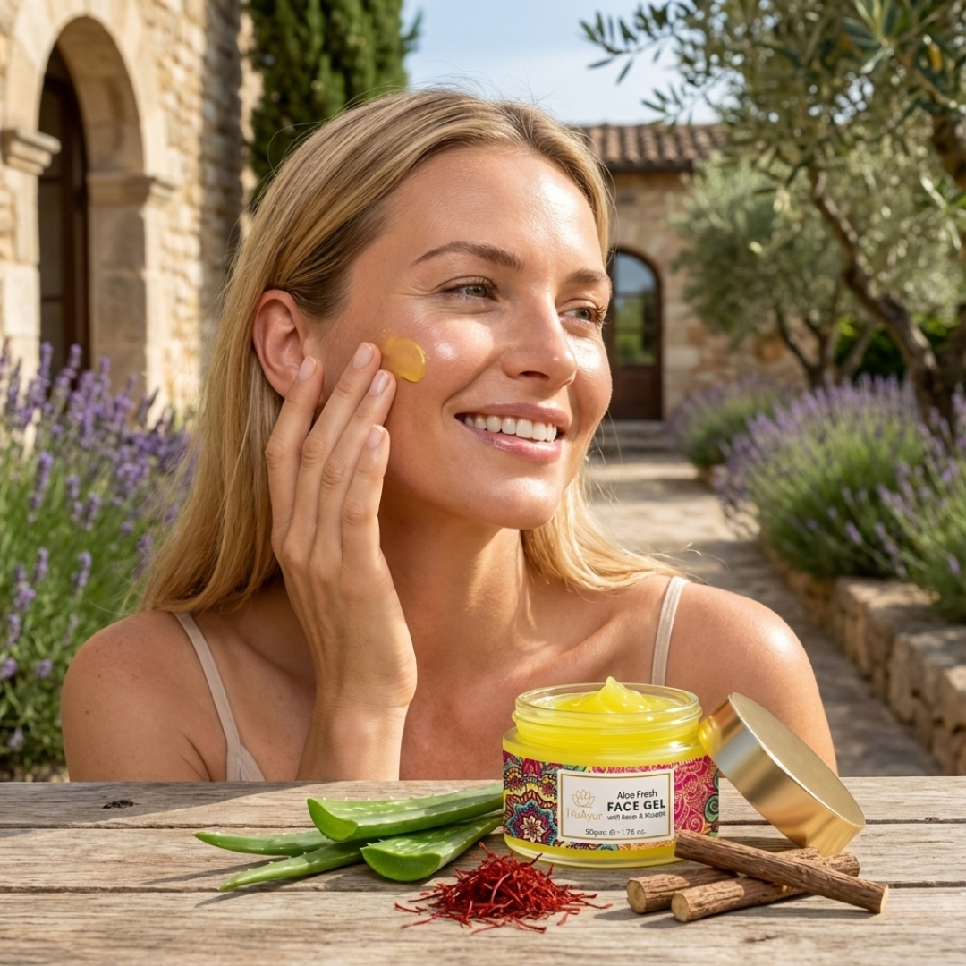 Ervaar met de Fresh Aloe Vera, Saffron Face Gel de tijdloze voordelen van ayurvedische wijsheid in combinatie met moderne wetenschap – een revitaliserend huidverzorgingsritueel dat uw huid van binnenuit hydrateert, verheldert en versterkt, waardoor deze stralend, evenwichtig en echt levendig wordt.