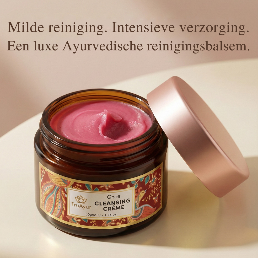 Onze Ghee Cleansing Cream is veel meer dan alleen een reinigende crème + balsem: het is een vernieuwingsritueel dat geworteld is in de Ayurvedische traditie. Geïnspireerd door de oude kunst van het reinigen met olie en gezichtsmassage, maakt deze crème gebruik van de helende eigenschappen van kruiden zoals manjistha, zoethout en ashwagandha om de huid te helpen ontgiften en de natuurlijke uitstraling te laten herleven.